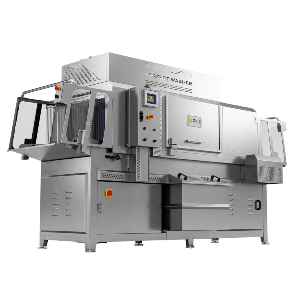 - Consistência absoluta e gestão total. O CLP gerencia digitalmente o tempo de ciclo, a temperatura exata da água, a velocidade da esteira e tempo pulsado. Isso elimina 100% da variação causada pelo “fator humano”, garantindo um resultado de higienização perfeito em todos os ciclos, todos os dias.
