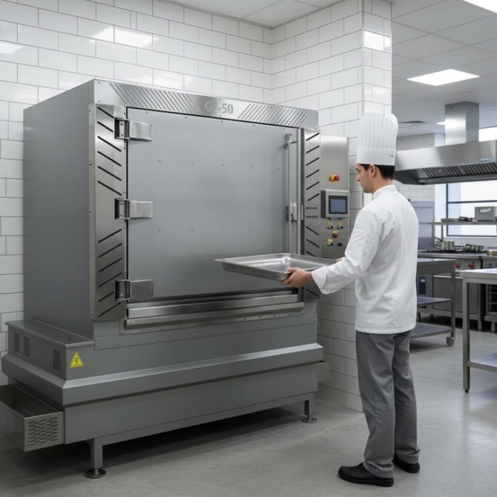 A GF-50 é uma lavadora industrial de alto desempenho, desenvolvida para atender às exigências intensas da indústria alimentícia. Possui uma estrutura robusta e uma ampla capacidade de carga, ideal para o processamento de grandes volumes de utensílios com máxima eficiência. Seu sistema de lavagem avançado assegura uma higienização profunda, reduzindo o consumo de água, energia e produtos químicos. Além disso, oferece agilidade operacional e confiabilidade nos processos, tornando-se a escolha ideal para empresas que buscam otimizar a produtividade sem abrir mão da qualidade e da durabilidade do equipamento.